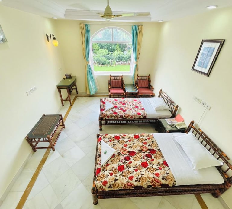 A glimpse of comfort and serenity at ISKCON Guest House.